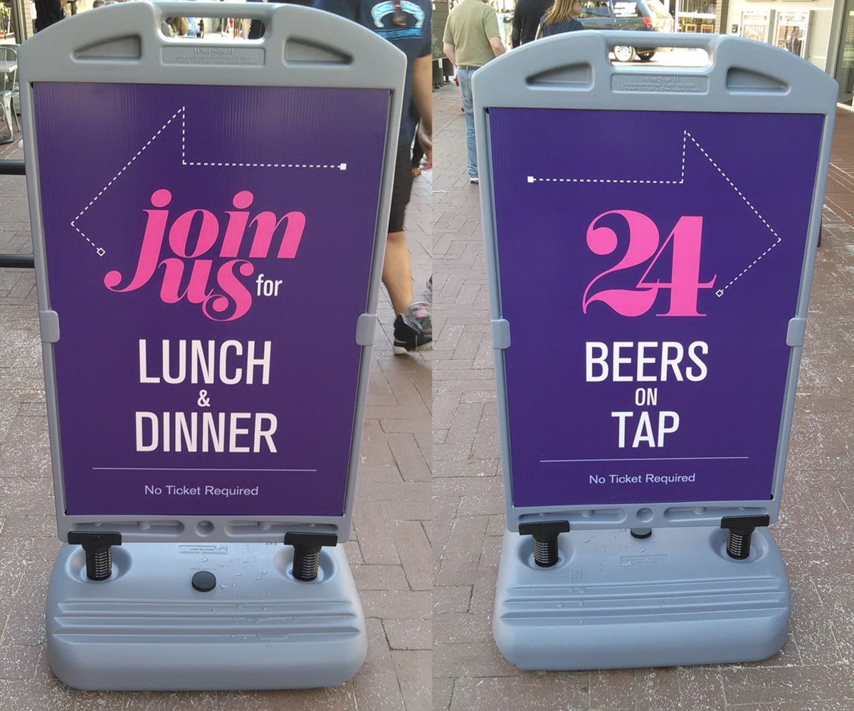 Though the possibilities for A-frames are endless. They’re a perfect choice for when you need to announce new hours of operation, showcase a daily special, or point customers towards a curbside pick-up location.