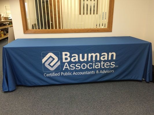 Image360 Eau Claire can show you company tablecloth options for all budgets. You’ll choose from printed tablecloths in four-, six- and eight-foot sizes as well as custom lengths. Our tablecloths with logos are constructed of long-wearing fabric that’s machine washable and readily transportable from event to event. Custom table runners are yet another attractive choice, while tablecloth banners and table skirts can provide a perfect finishing touch!