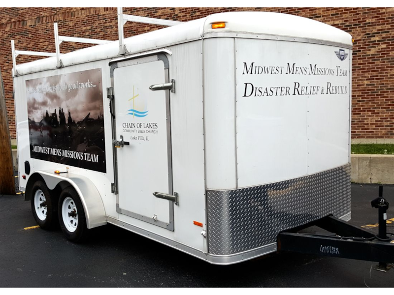 This trailer is equipped to help disaster relief efforts. The Midwest Missions Team is sponsored by Chain of Lakes Bible Church in Lake Villa, IL. Men from other local churches go out as well to help those most hurting after floods, tornados etc. Always proud to assist them in our small way.