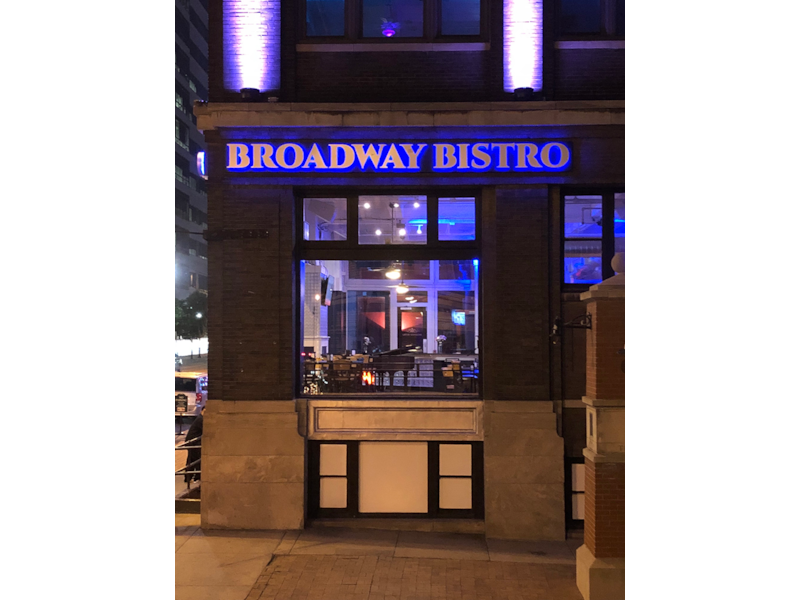 Halo-lit Aluminum Dimensional Letters on Raceway for Broadway Bistro in Kansas City, Missouri