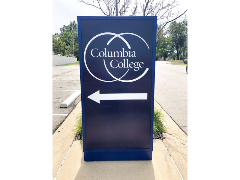 Exterior Illuminated Wayfinding Cabinet for Columbia College in Kansas City, Missouri