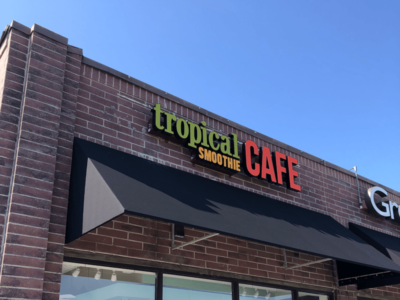 Channel Letters on Raceway for Tropical Smoothie Cafe in Kansas City, Missouri