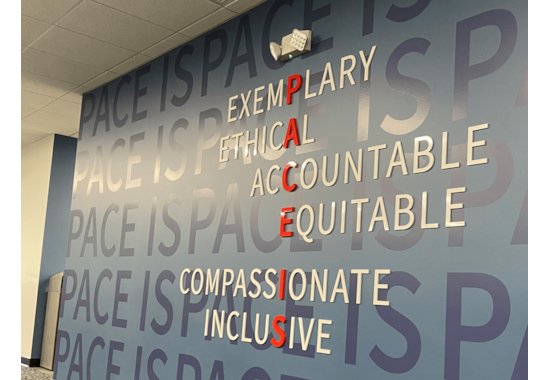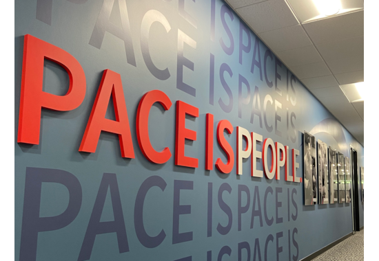 Pace Branded “Pace Is” Core Values Artwork with Dimensional Lettering and Custom Cut Vinyl