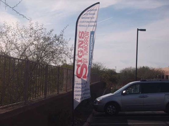 Long may they wave! As the name implies, these flags flutter in the breeze to capture the eye of passersby. Custom graphics can be printed on both sides of business flags for easy readability. Feather or flutter flags easily capture the attention of potential customers from a distance and help draw them to your location in Scottsdale.