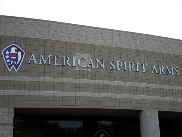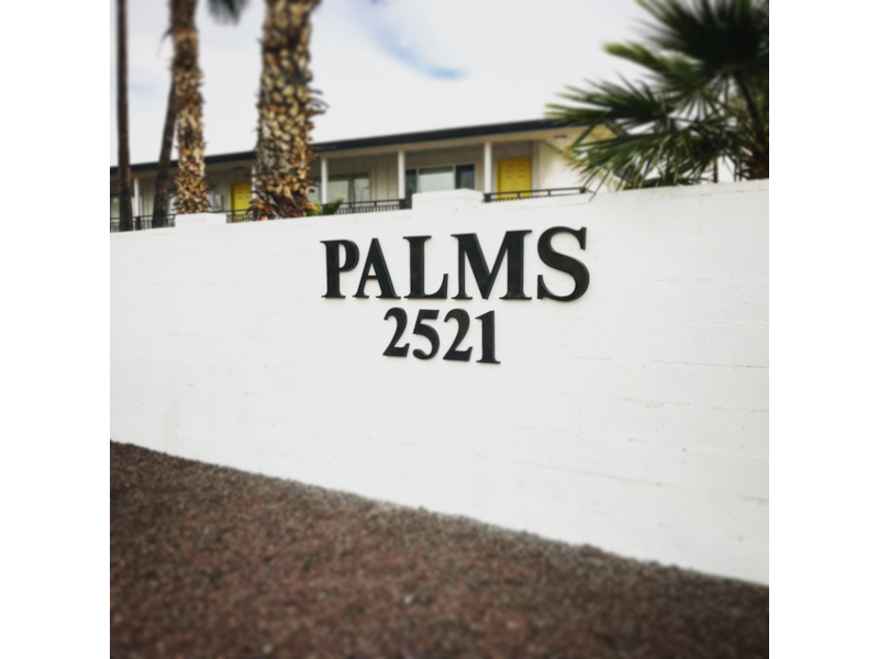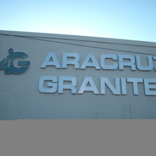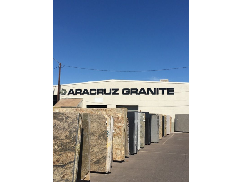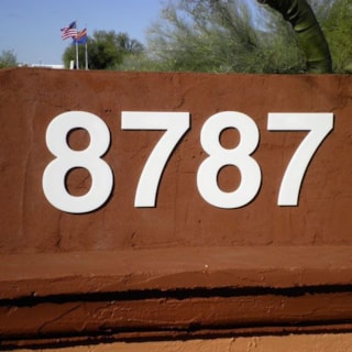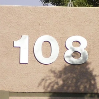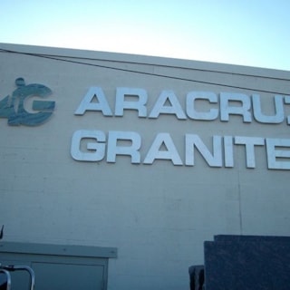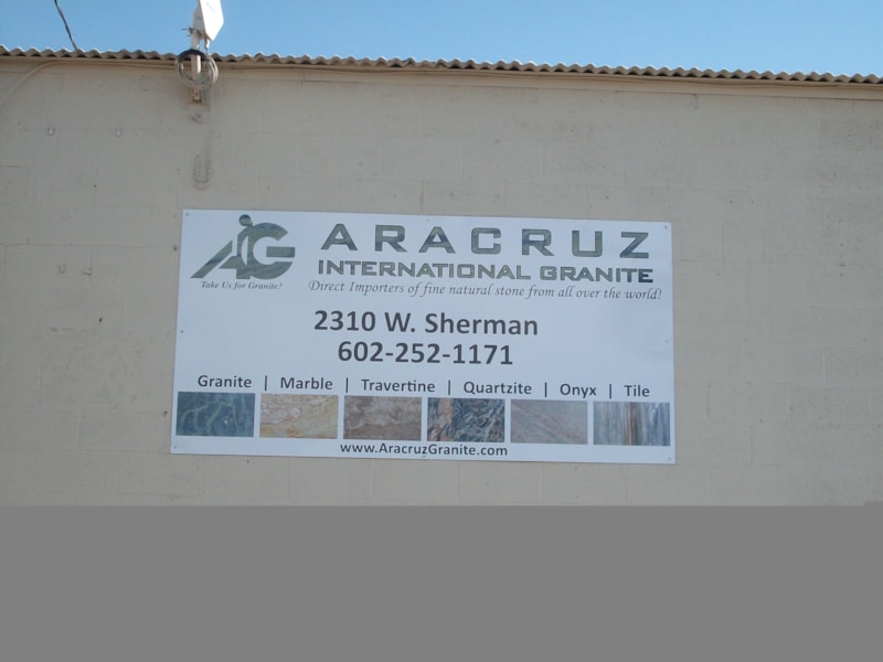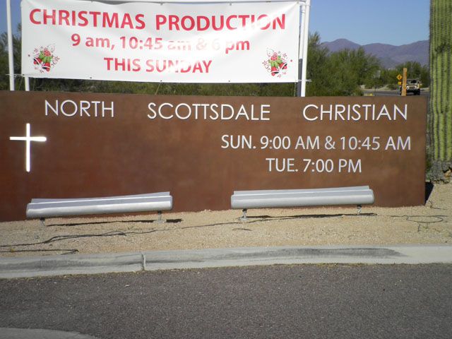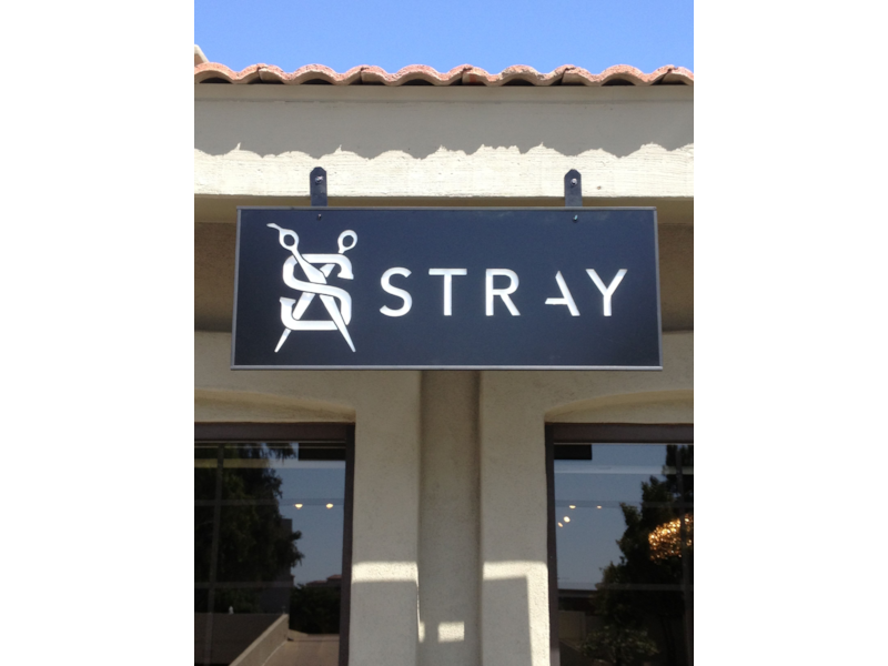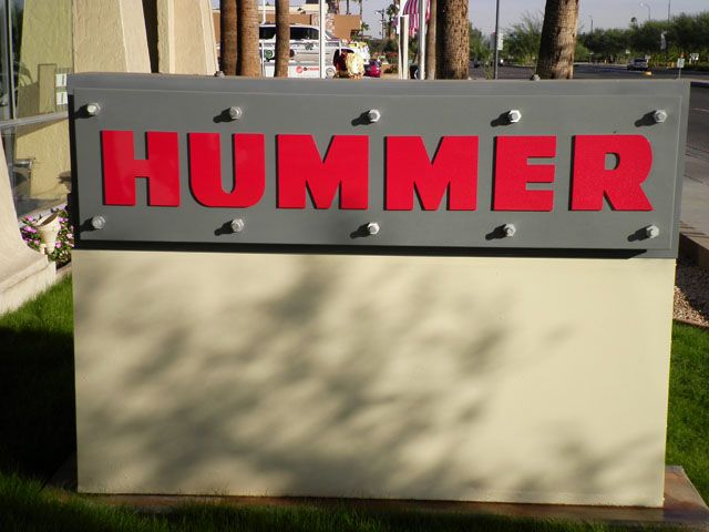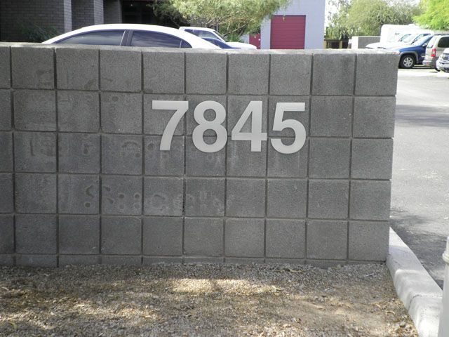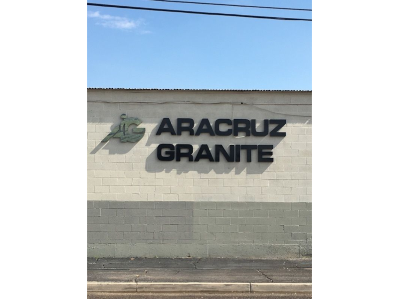 Flat cut out aluminum on black poly metal with 1/2" black stand-offs.