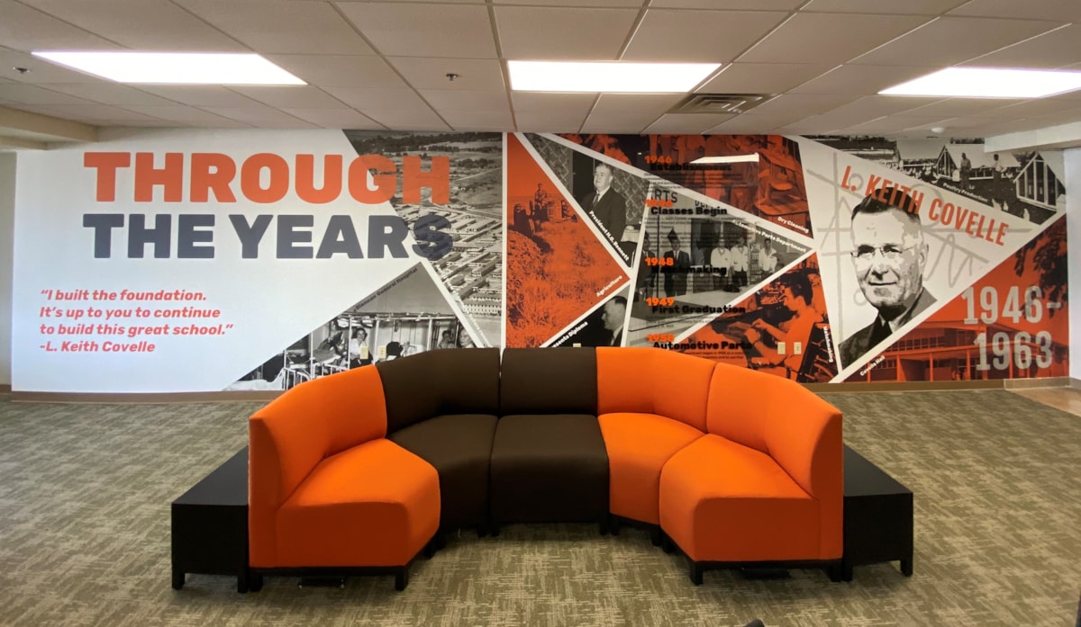 From full-size, floor-to-ceiling full wall murals to smaller custom wall graphics, decals and designs, the creative team at Image360 Tulsa East can develop and produce a solution that benefits you and your brand. By working collaboratively with you, our team is able to create a wall mural that suits your needs, complements your brand image and sticks to your budget.