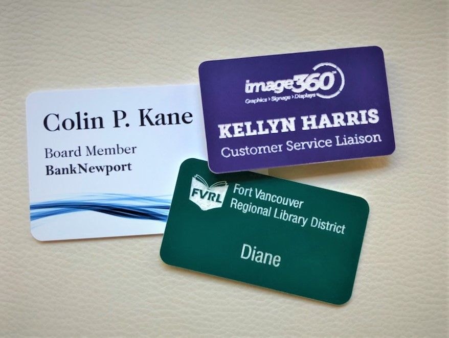 Select from standard, off-the-shelf solutions or opt for custom, one-of-a-kind designs. Hanging name badges, engraved badges and other name sign solutions from Image360 Vancouver WA can be readily branded with logos, company colors, and graphics.